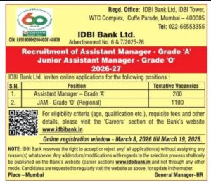 Use of above post is only for information interested candidates are apply through the IDBI Bank careers page.